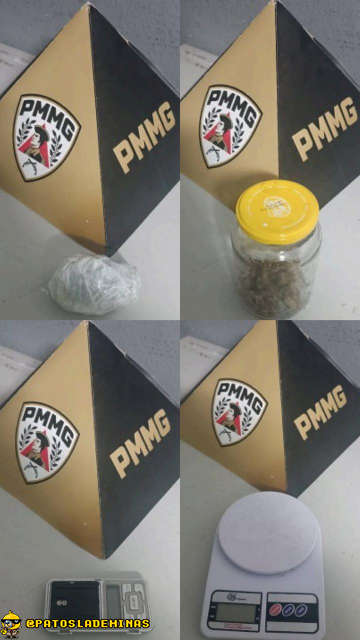 Momentos depois, o homem de 34 anos retornou ao local e foi informado sobre o teor da denúncia. Questionado, ele negou possuir arma de fogo, mas relatou que havia uma porção de maconha na cozinha destinada ao próprio consumo, autorizando as diligências dos militares. Durante as buscas, o cão farejador Kyron sinalizou uma caixa de sapatos dentro do guarda-roupa do casal, onde foi encontrada, no interior de um tênis, uma quantidade considerável de substância semelhante à maconha, assumida como sendo de sua propriedade.